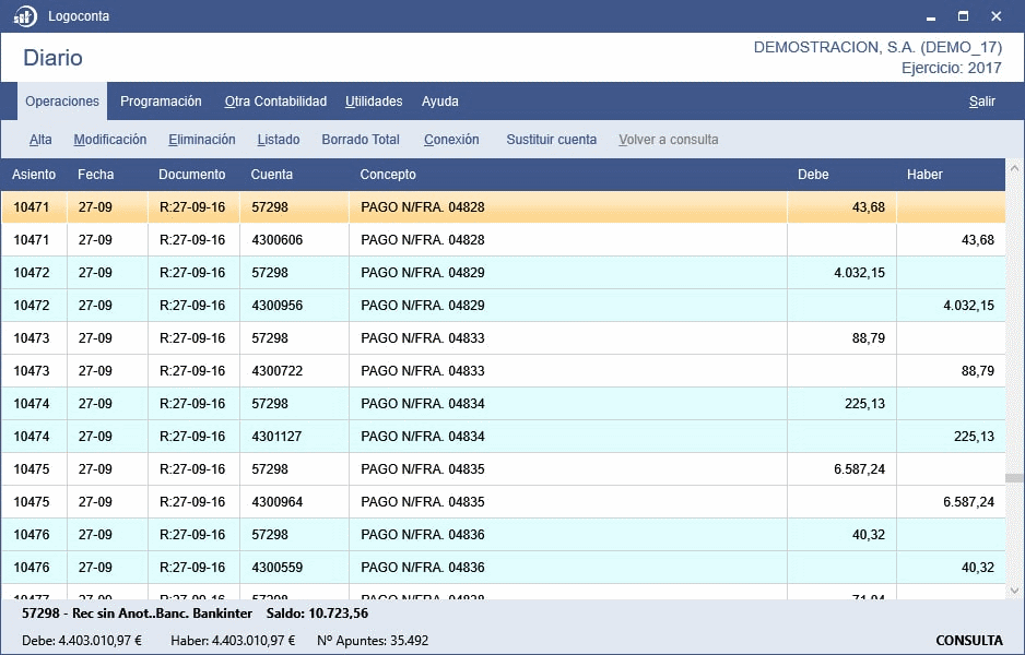 - Consulta de saldos de las cuentas.