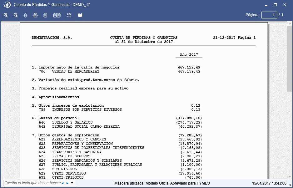- Cuenta de Pérdidas y Ganancias.