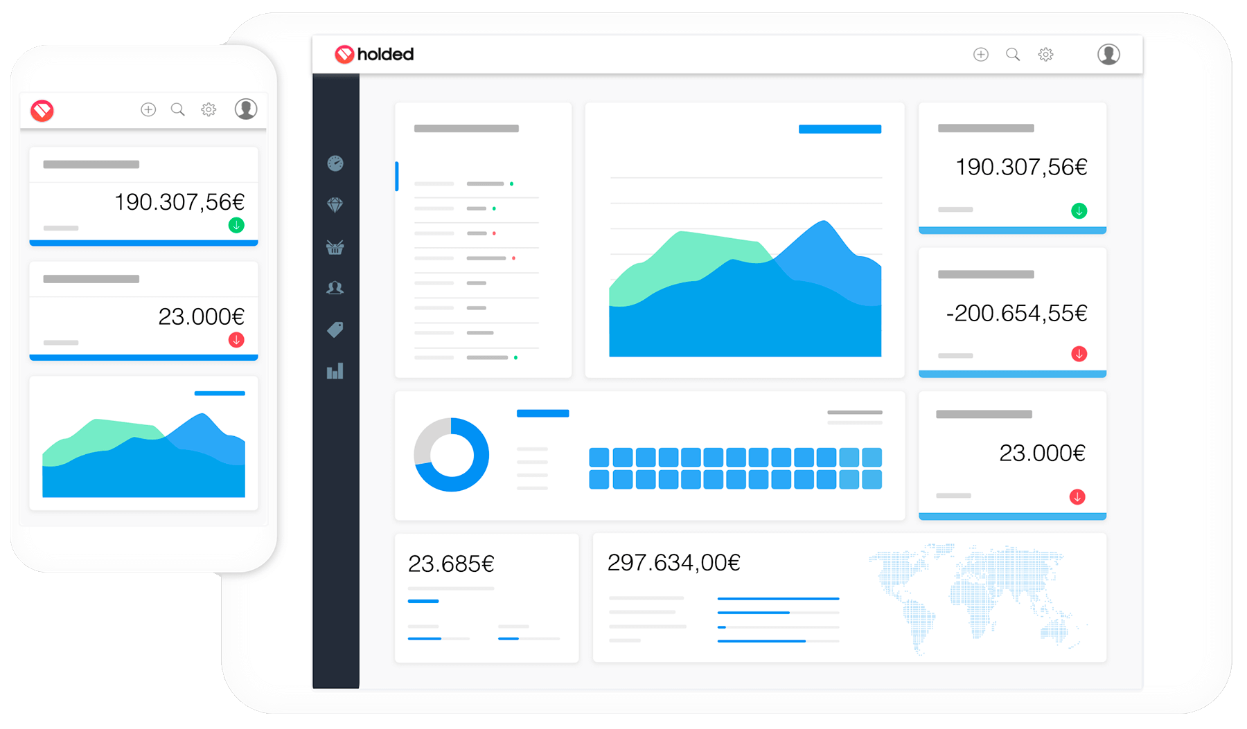Holded es un ERP que permite gestionar cualquier aspecto de tu empresa de manera integral, sin necesidad de disponer de multitud de programas individuales. Puedes sacar partido de la funcionalidad que prefieras de manera independiente o de forma global. Es una aplicación que puede utilizarse desde cualquier lugar con conexión a internet, ya que es una aplicación web (aunque también existen apps para dispositivos móviles). Esto hace de Holded una navaja suiza que puedes utilizar de manera sencilla y en cualquier circunstancia.