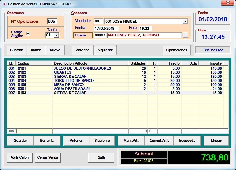 • Otras características: Enlace con el programa NCS Contabilidad, fidelización de clientes por puntos.